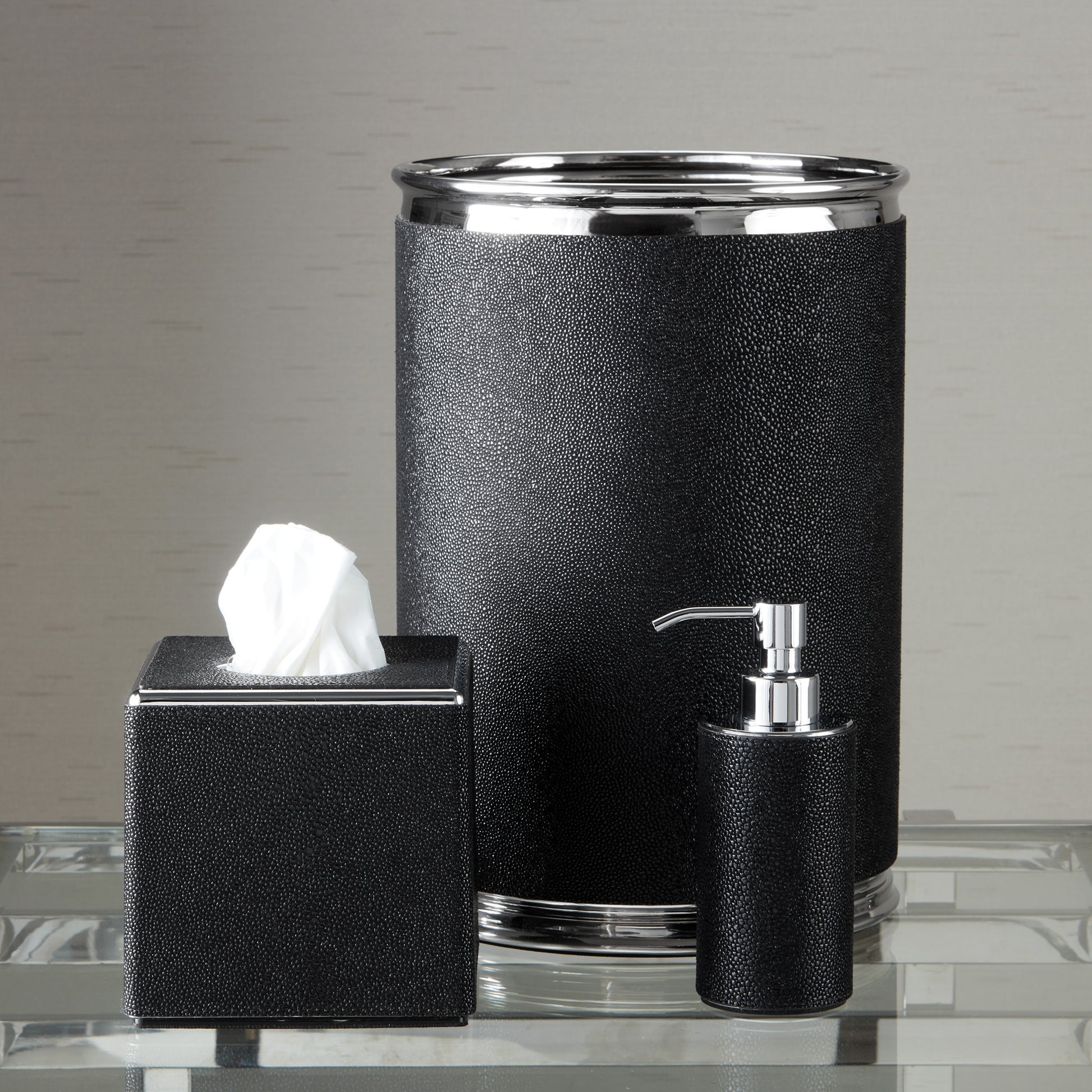 Conceived and fashioned under the watchful eyes of skilled designers and artisans, the POSEIDON bath accessory collection is made in Italy and clad in ARI shagreen textured leather with a glossy Black finish and chrome detailing. Additional colors are available.