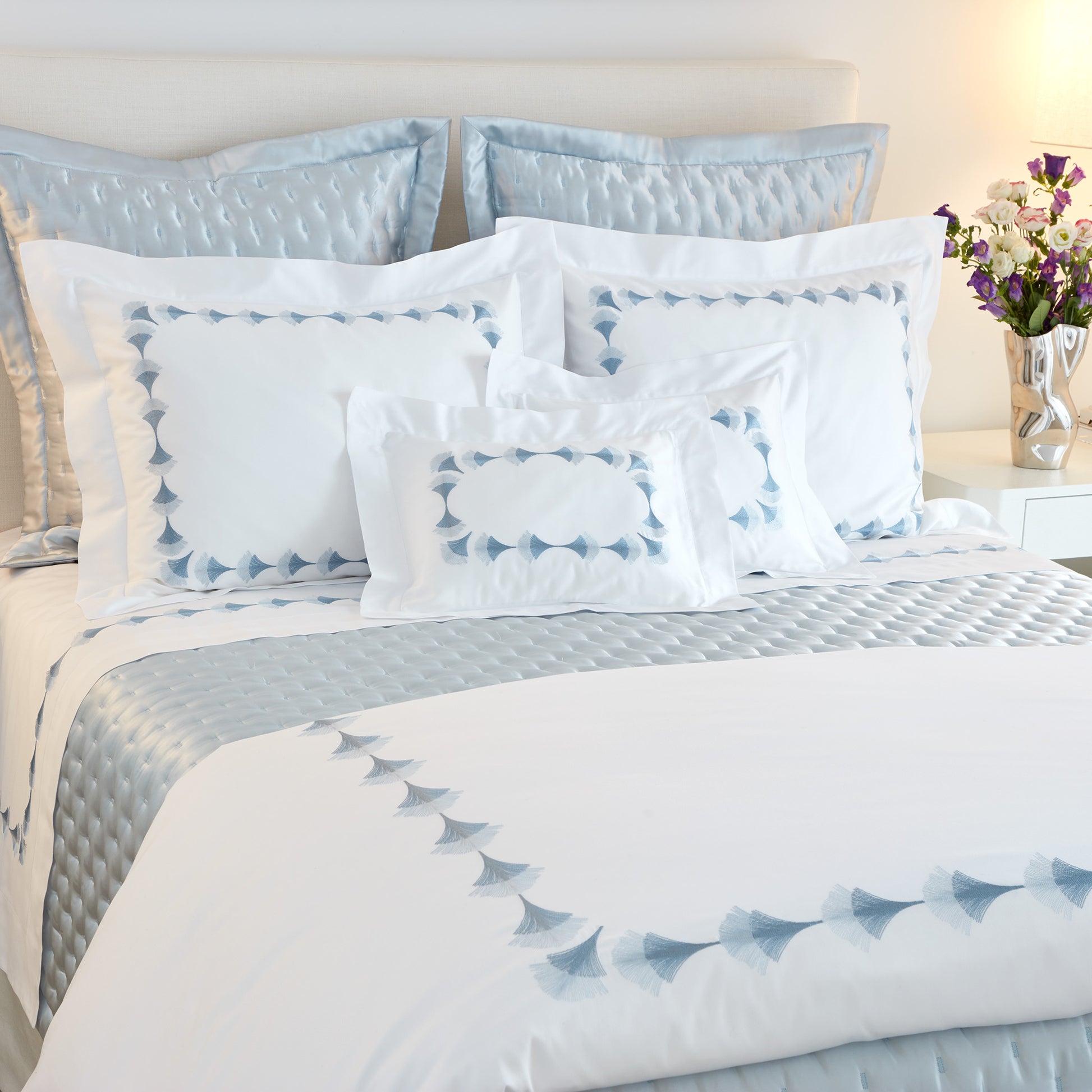 NEW AUDE is an ode to elaborate passementerie trimmings and silken tassels artfully embroidered on 300 TC cotton sateen.