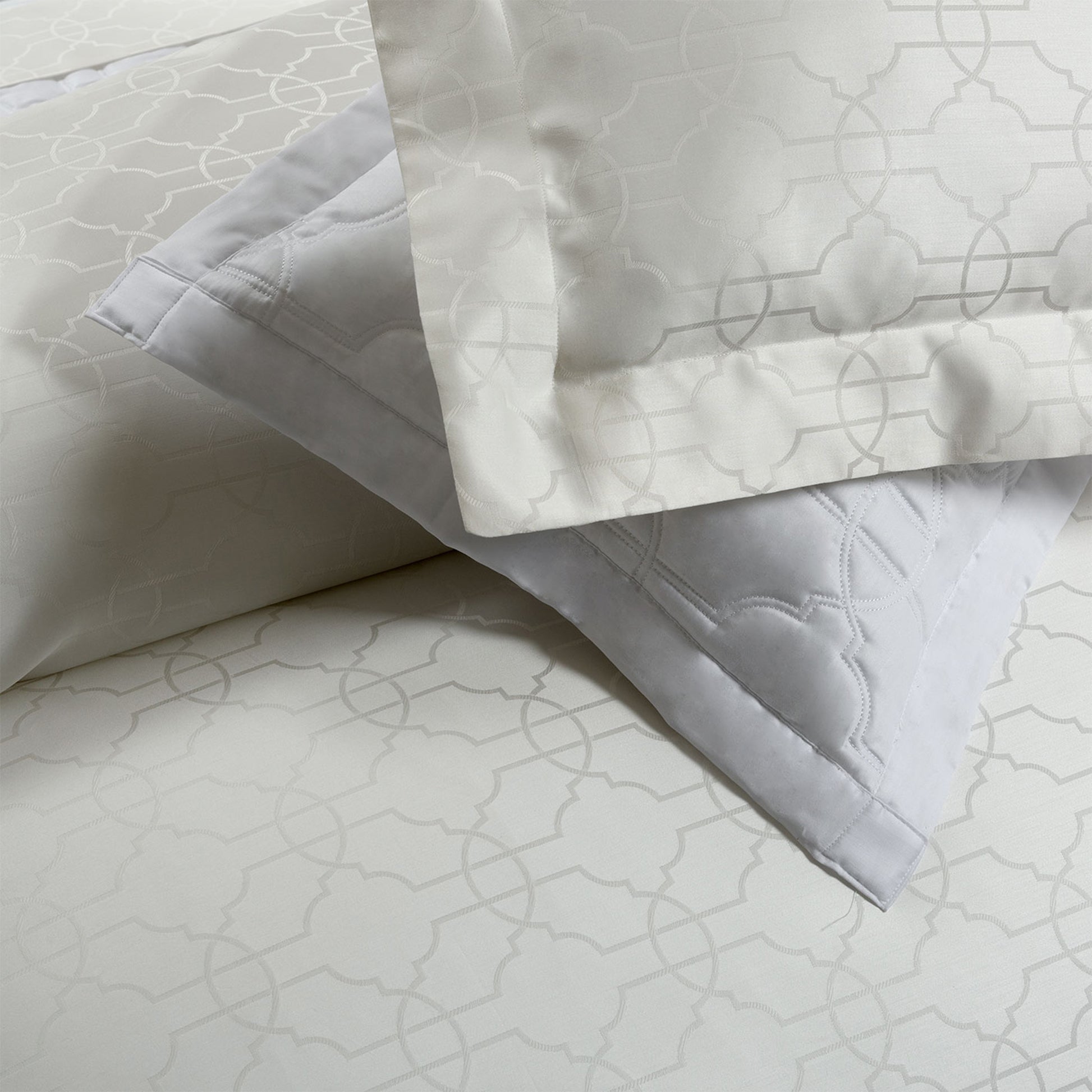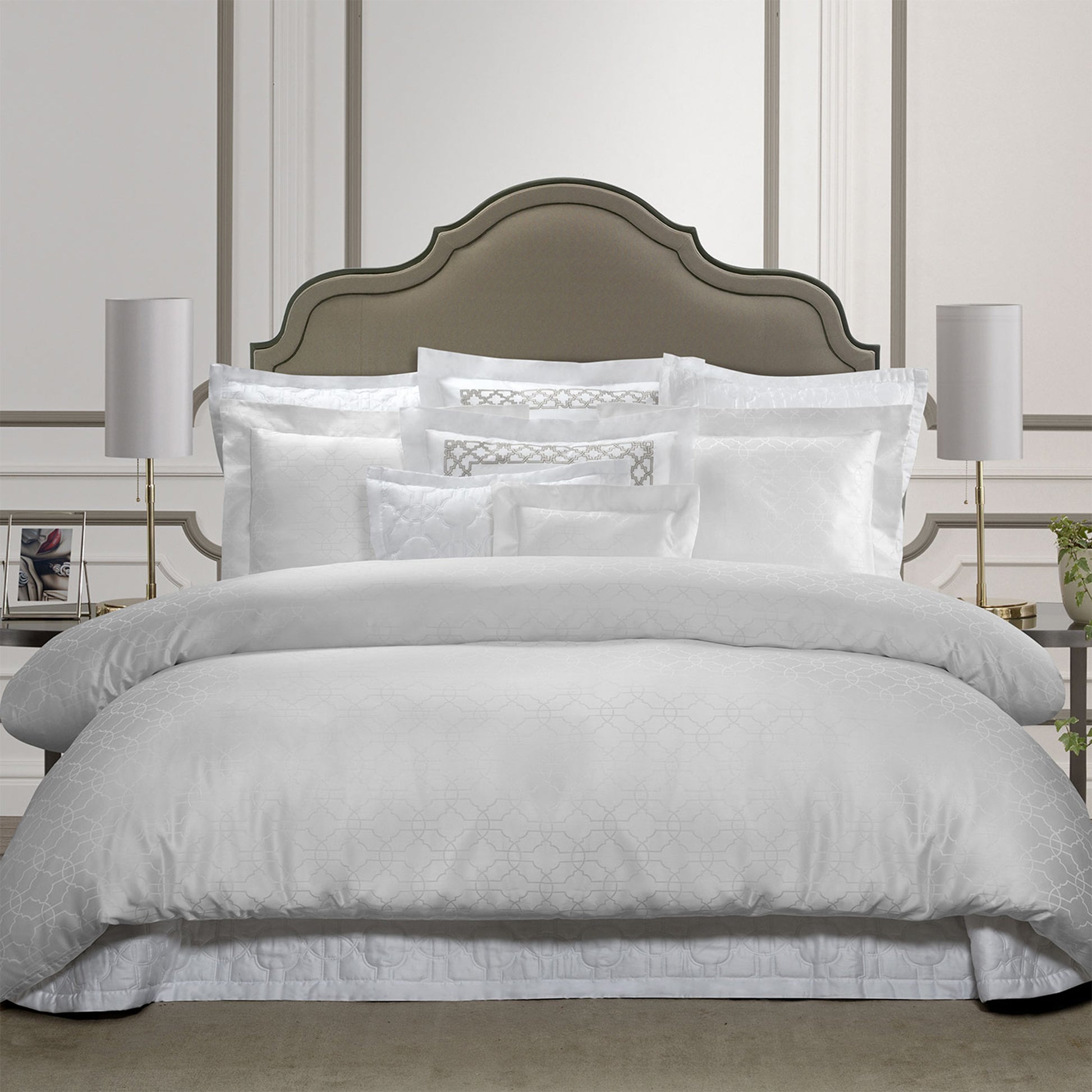 The FRETWORK collection by Timothy Corrigan for Dea features a classic curvilinear geometric motif that creates a distinctively elegant pattern on this 600 TC Jacquard woven bedroom set. FRETWORK is also available in a coordinating embroidered design and quilted pattern.